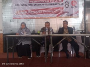 Spaktual.com – Kab Bandung,; Hj Diah Nurwitasari M.I.Pol, Anggota DPR RI Fraksi PKS dapil Jabar II, kabupaten Bandung – kabupaten Bandung Barat (Caleg DPR RI ) didampingi Anggota DPRD Proinsi Jawa Barat H Jajang Rohana S.Pdi, (Caleg DPRD Provinsi Jabar) dan Anggota DPRD Kabupaten Bandung, H Wawan Ruswandi S.Sos.I, (Caleg DPRD kabupaten Bandung) melakukan konsolidasi menyampaikan Visi Misi dan tata cara pencoblosan kertas suara pemilu 2024,kepada para saksi dan Kordes tingkat Kecamatan.yang berlangsung di Vila Anisa Perumahan Regency desa Bumiwangi kecamatan Ciparay kabupaten Bandung Jawa Barat, pada Senin (18/12/2023) Siang.