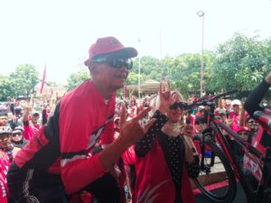Spaktual.Com- Kab Bandung ;-Sekitar 500 warga masyarakat ikut dalam rangka Even Gowes Sepedah Santai bersama Yadi – Nia Kegiatan ini diselenggarakan oleh Komonitas YD. yang dilepas secara langsung berturut-turut oleh anggota DPR RII Fraksi PDI Perjuangan, H.Yadi Srimulyadi,(Caleg DPRD Dapil Jabar 2 kabupaten Bandung – kabupaten Bandung Barat) dan anggota DPRD Provinsi Jawa Barat, Hj.Nia Purnakania SH.M.kn,(Caleg DPRD Provinsi Jabar Dapiil Jabar 2 kabupaten Bandung) serta turut hadir juga anggota DPRD kabupaten Bandung, H.Yayat Sumirat SH, (Caleg DPRD kabupaten Bandung Dapil 6 ) Yang berlangsung dilapangan Sekretariat PAC PDI Perjuangan Jalan raya Lalareun desa Solokan Jeruk kecamatan Solokan Jeruk kabupaten Bandung Jawa Barat Pada Minggu (14/1/2024) dan juga pada kegiatan ini dibagikan berbagai hadiah menarik yang dibagikan cara di undi berdasarkan kupon,