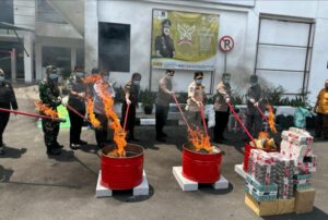Barang Bukti yang berhasil dimusnahkan diantaranya adalah sebagai berikut : Jumlah total perkara yang barang buktinya dimusnahkan adalah 238 (dua ratus tiga puluh delapan) perkara, dengan rincian sebagai berikut :Perkara Tindak Pidana Umum Terhadap Keamanan Negara dan Ketertiban Umum serta Tindak Pidana Umum Lainnya (KAMNEGTIBUM & TPUL) : 36 Perkara. Perkara Tindak Pidana Umum Terhadap Orang dan Harta Benda (OHARDA) : 77 Perkara.➢ Perkara Tindak Pidana Umum Narkotika, Psikotropika dan Zat Adiktif Lainnya (NAPZA) : 122 Perkara.➢ Perkara Tindak Pidana Khusus (PIDSUS) : 3 Perkara. Jenis dan jumlah (berat netto) barang bukti yang dimusnahkan terdiri dari sebagai berikut :