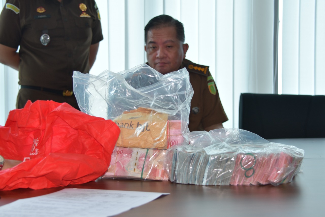 1. 1(satu) buah tas hitam berisi pecahan uang Rp.100.000,- dan Rp.50.000,- berjumlah Rp.351.900.000,- (tiga ratus lima puluh satu juta sembilan ratus ribu rupiah).